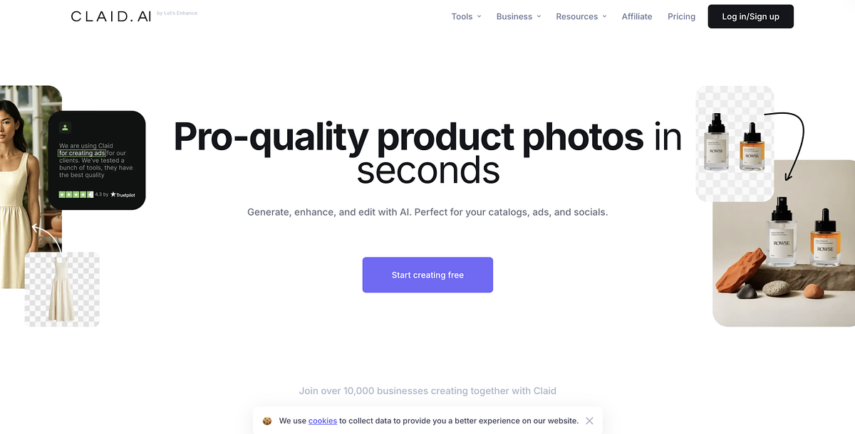 For small businesses or creators selling products online, Claid.ai removes the need for complicated studio setups by letting you create clean, professional product photos quickly.