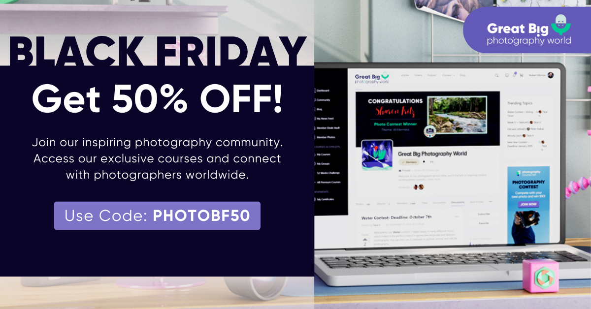 Great Big Photography World ist eine Online-Community für Fotografen, die Premium-Kurse, erstklassige Klassen und spannende Herausforderungen anbietet. Mitglieder erhalten exklusiven Zugang zu einem globalen Netzwerk leidenschaftlicher Fotografen, das Vernetzungs- und Lernmöglichkeiten bietet.
