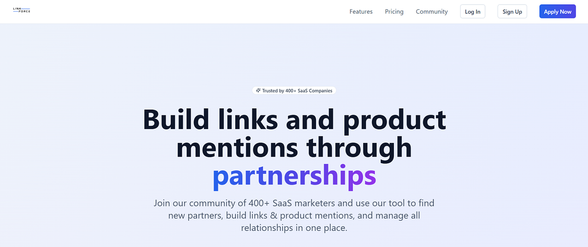LinkForce ist eine Community-basierte Linkbuilding-Plattform, die speziell für SaaS-Unternehmen entwickelt wurde, um durch strategische Partnerschaften Links und Produkterwähnungen zu generieren. Mit einem Netzwerk von über 700 SaaS-Marketern kombiniert LinkForce Partnerfindung, KI-gestützte Kontaktaufnahme und Beziehungsmanagement, um Unternehmen dabei zu helfen, ihr Suchmaschinenranking und ihre Sichtbarkeit im Linkbuilding-Marketing zu verbessern.